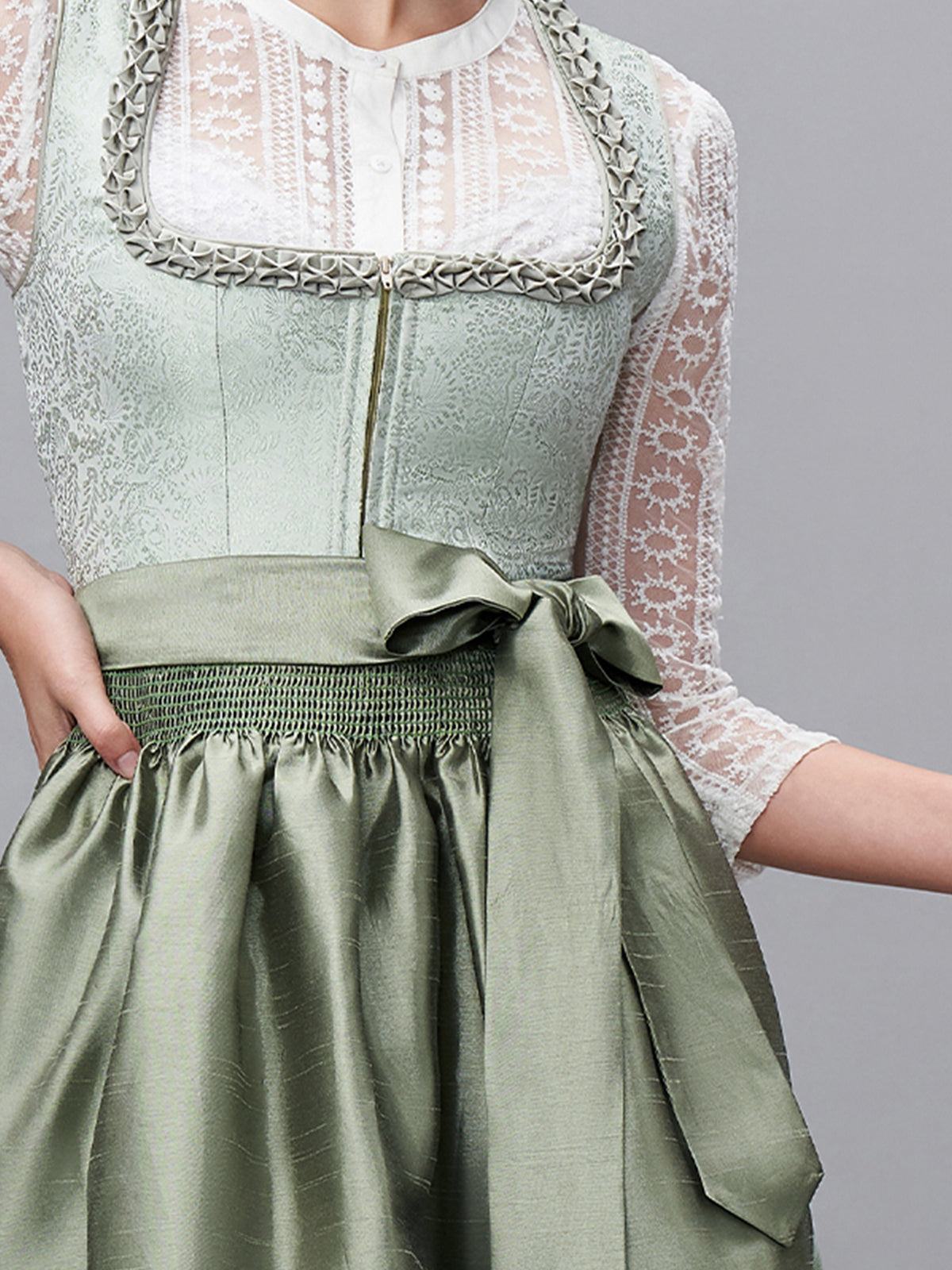 Unsere von engagierten Designerinnen kreierten Dirndl sind von den neuesten Modetrends inspiriert und durch handgefertigte Details verfeinert. Jedes Stück wird aus sorgfältig ausgewählten Materialien hergestellt, wobei großer Wert auf die harmonische Ausarbeitung der Miederhaken gelegt wird. Die über Jahre entwickelten Passformen unserer Dirndl garantieren einen perfekten Sitz, eine Kombination aus traditioneller Handarbeit und modernem Design.