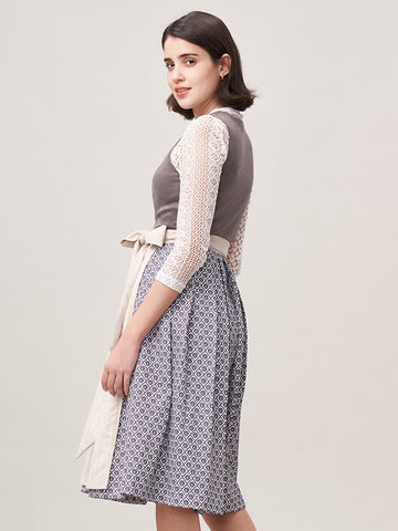 Damen Grau Zwei verdeckte Eingriffstaschen Geometrische Muster Dirndl MAXIMA - 32